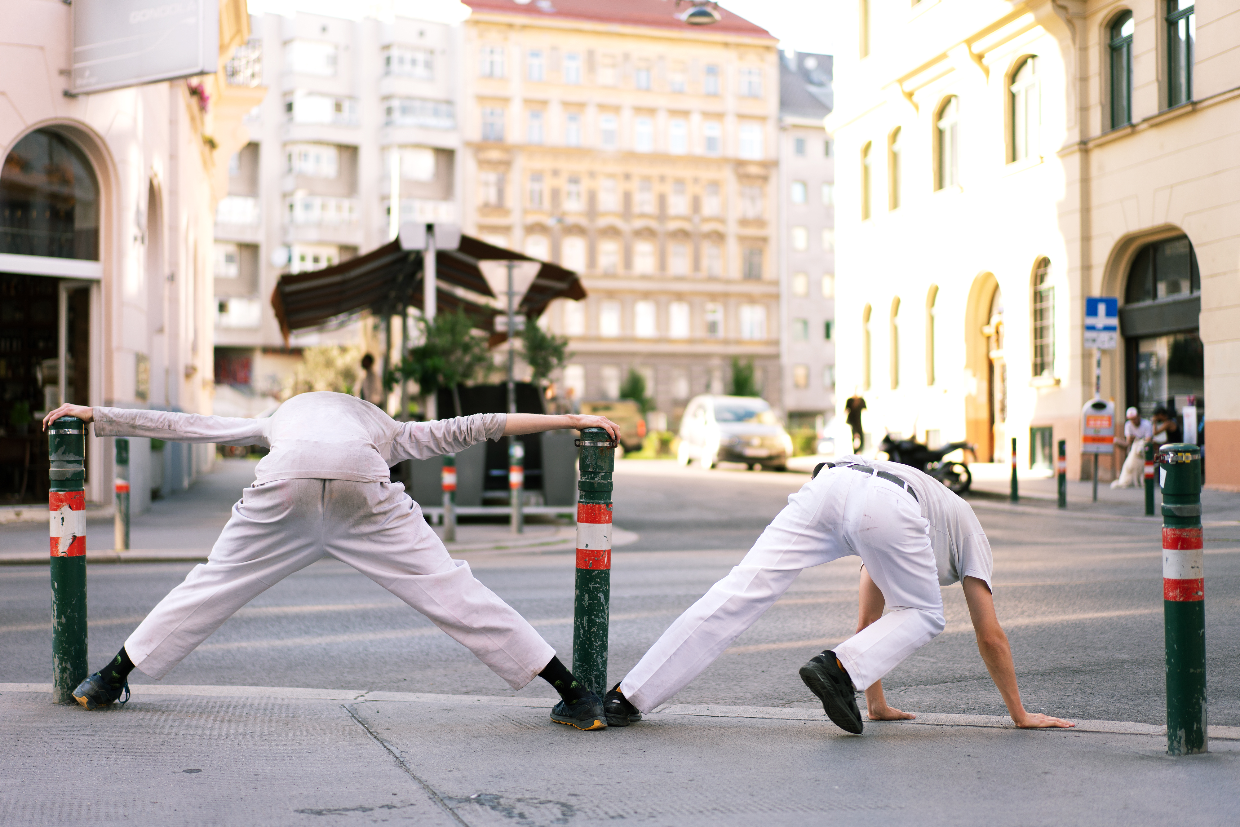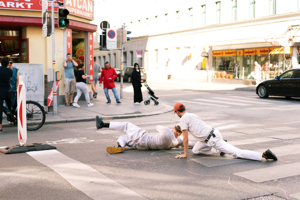 Through a spectrum of shared physical practices in public space, Diverting the Public Space aims to explore new modes of action and perception, leading to a self-empowerment of the participants and an invitation to dialogue and engagement with passers-by. Together, old patterns of movement in public space will be questioned and a new playful yet critical physicality will be explored. The developed and guided partitions / scores shall give the possibility to deeply inscribe into the public space in a different way and to practice and experience a choreographic perception. The space, transformed into a multifaceted adventure playground (for young and old), is intended to open utopian windows of possibility for a different „merging“ with our human-made, urban environment and the questioning of its norms.